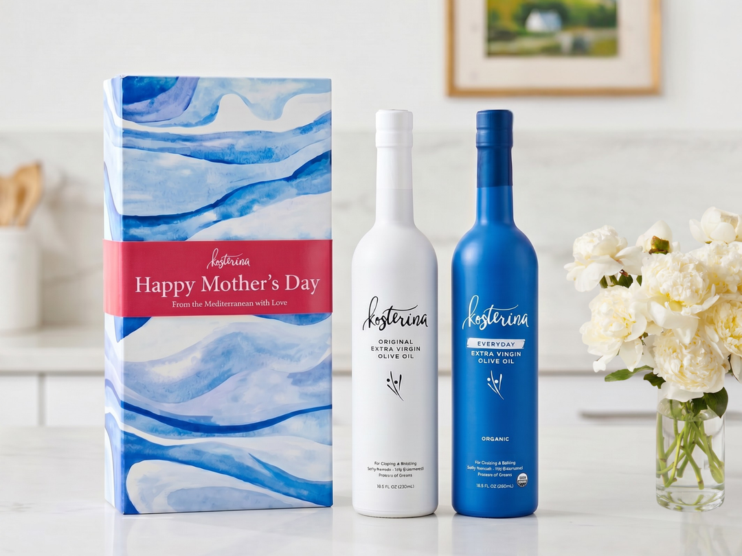 Kosterina ultra premium extra virgin olive oil is made from 100% Koroneiki Olives, cold pressed and harvested early in southern Greece. The result is a flavorful and incredibly healthy EVOO that stands out from the rest.