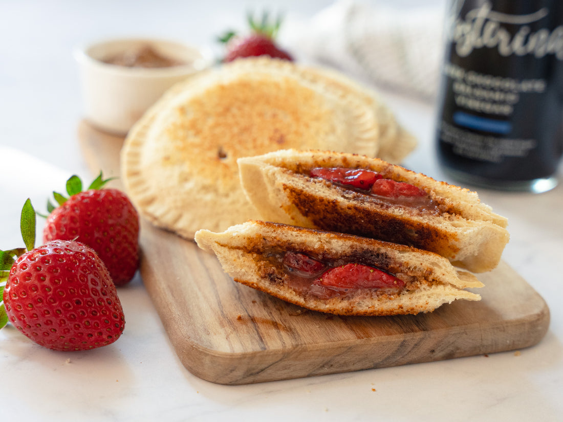 To a pan over medium-low heat, add the Kosterina Original Olive Oil. Crisp the sandwich in the pan until lightly golden brown.