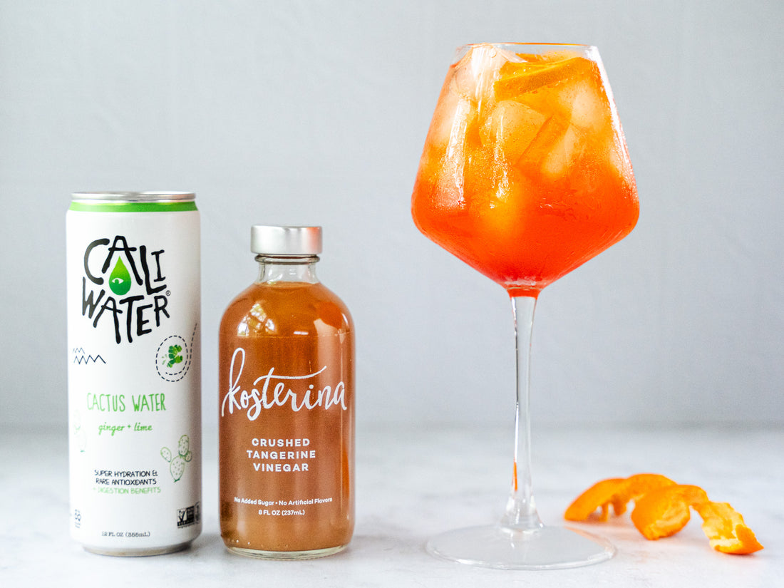 Add ice, then top with 1/2 oz Kosterina Crushed Tangerine Vinegar, 1 oz Aperol, 2 oz Prosecco, and top off with Ginger and Lime Caliwater. Garnish with tangerine slices if desired.