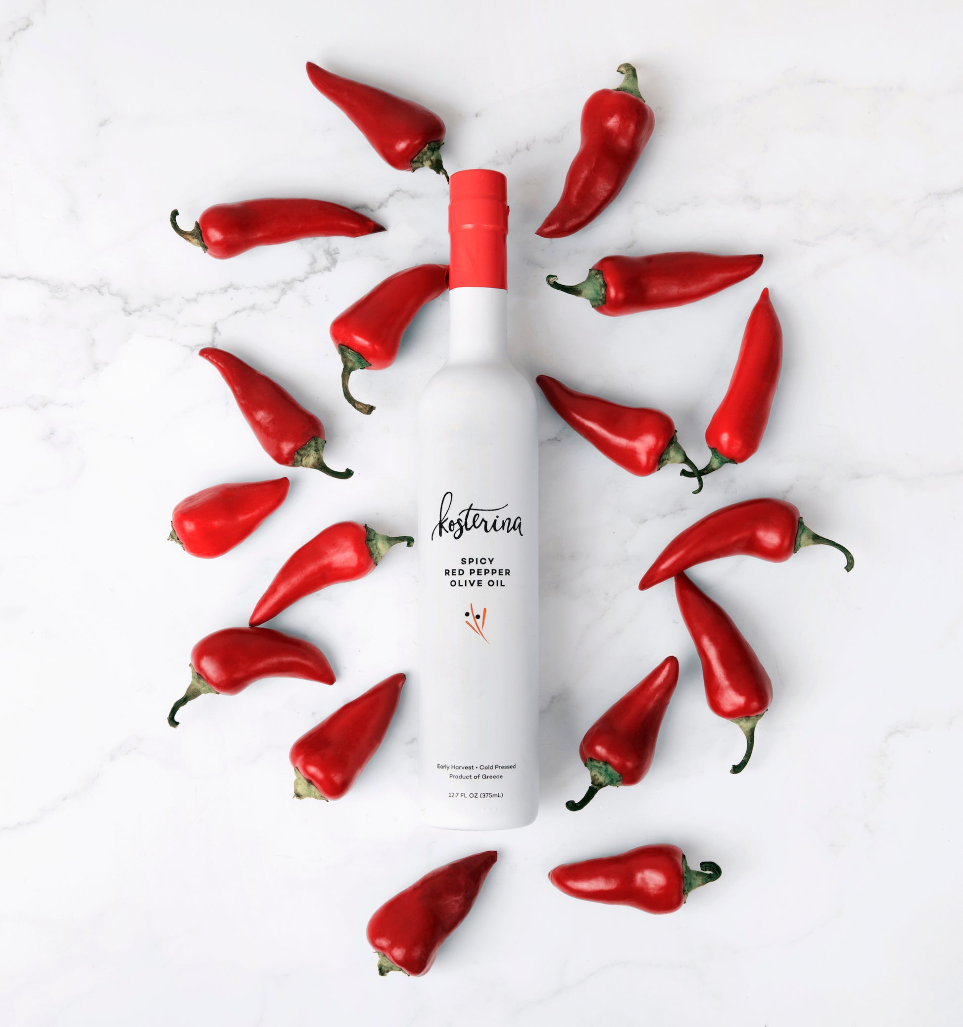 Our Spicy Red Pepper Olive Oil adds bold flavor to any dish. Each bottle starts with our 100% pure, ultra-premium extra virgin olive oil, which is cold-pressed from early harvest Koroneiki olives in southern Greece. Our EVOO is rich in healthy polyphenols (powerful anti-inflammatory antioxidants). Polyphenol content measuring over 55mg/kg is required for an olive oil to be deemed extra virgin - this Kosterina harvest measured 470 mg/kg of polyphenol content! We then add a dash of spice with red pepper oil, to add complexity to any dish.