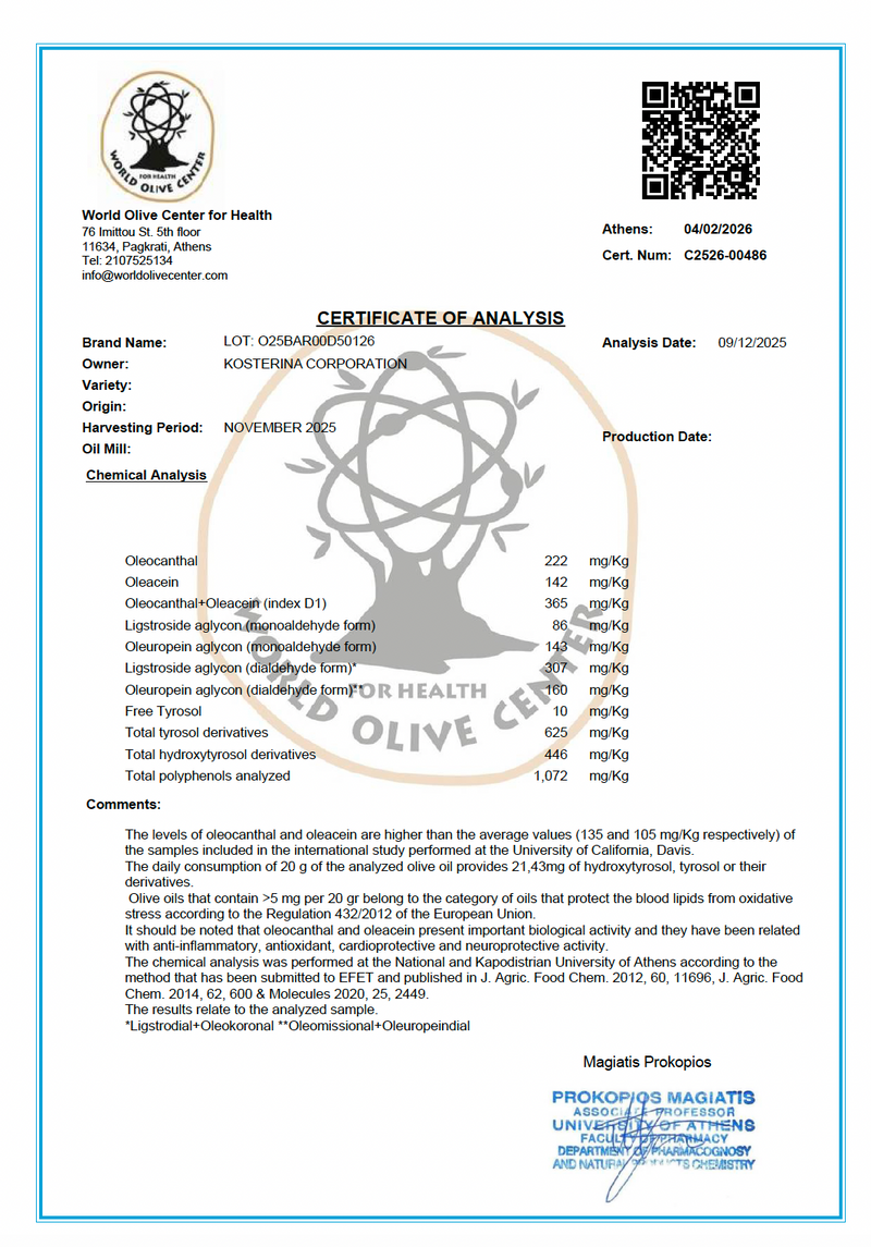 Introducing your daily dose of wellness! Kosterina’s new Extra Virgin Olive Oil Shot delivers powerful health benefits in one small sip. Powered by nature, this EVOO shot is packed with healthy polyphenols, antioxidants that support gut, metabolic, heart, skin, and immune health.