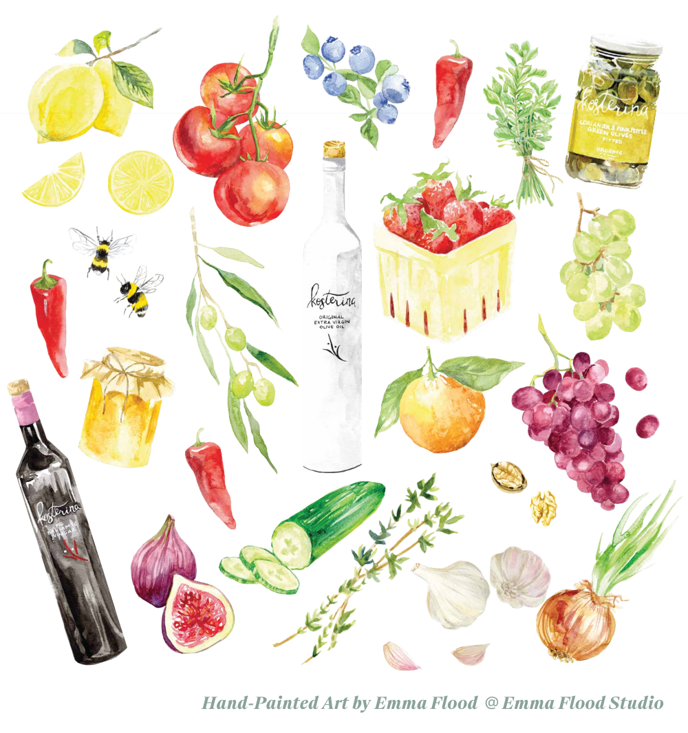 All of our extra virgin olive oils are made from 100% Koroneiki olives harvested in southern Greece. The Kosterina family hails from Koroni - the home of the Koroneiki olive.